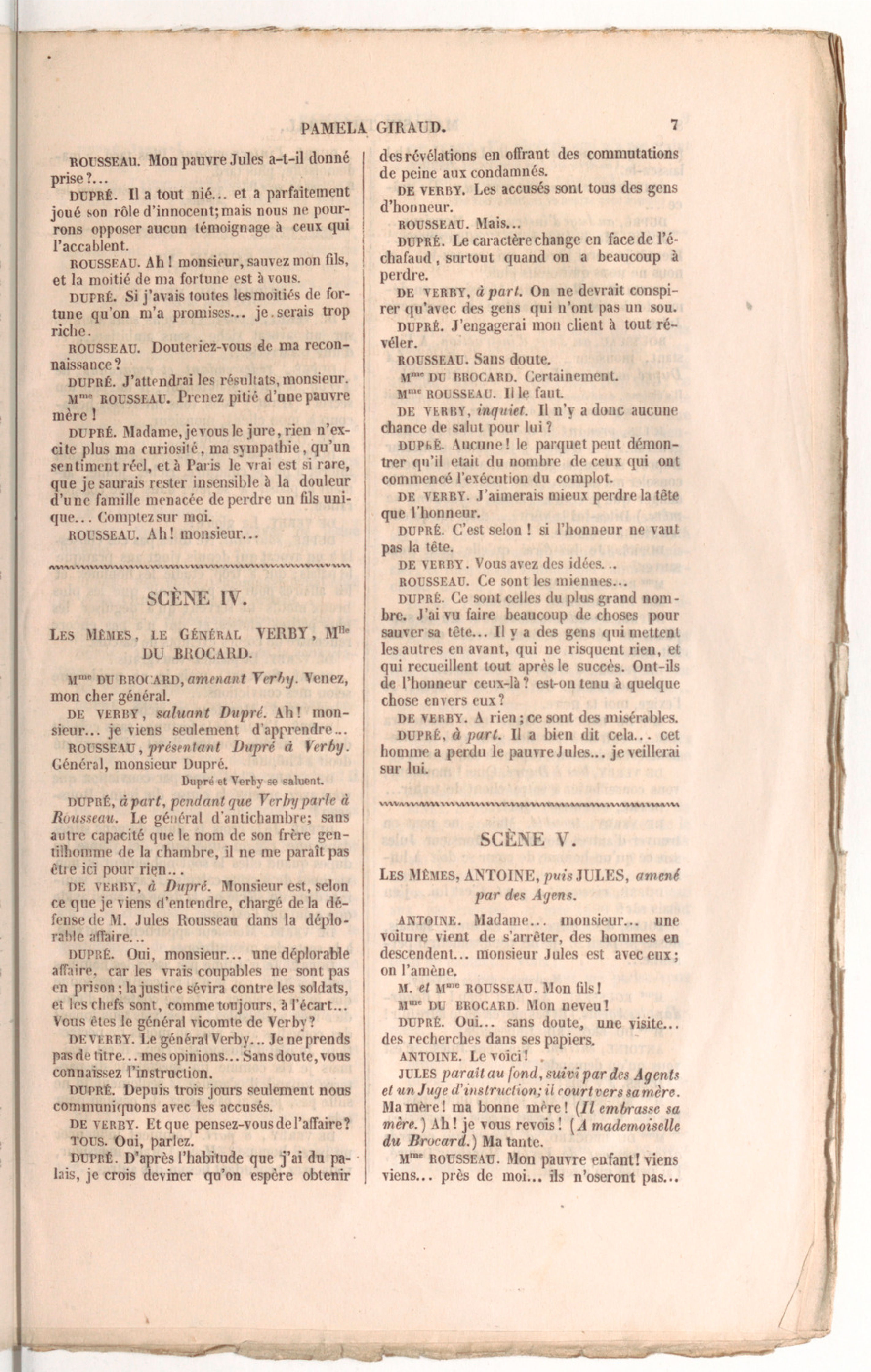 Non, ma chère Paméla… je sais qui vous êtes, et je vous ai appréciée… Je vous aime, je suis riche, et nous ne nous quitterons jamais. Ma voiture de voyage est chez un ami, à la Porte-Saint-Denis ; nous irons la prendre à pied ; je vais m’embarquer pour l’Angleterre. Venez, je vous expliquerai mes intentions, car le moindre retard pourrait m’être fatal.